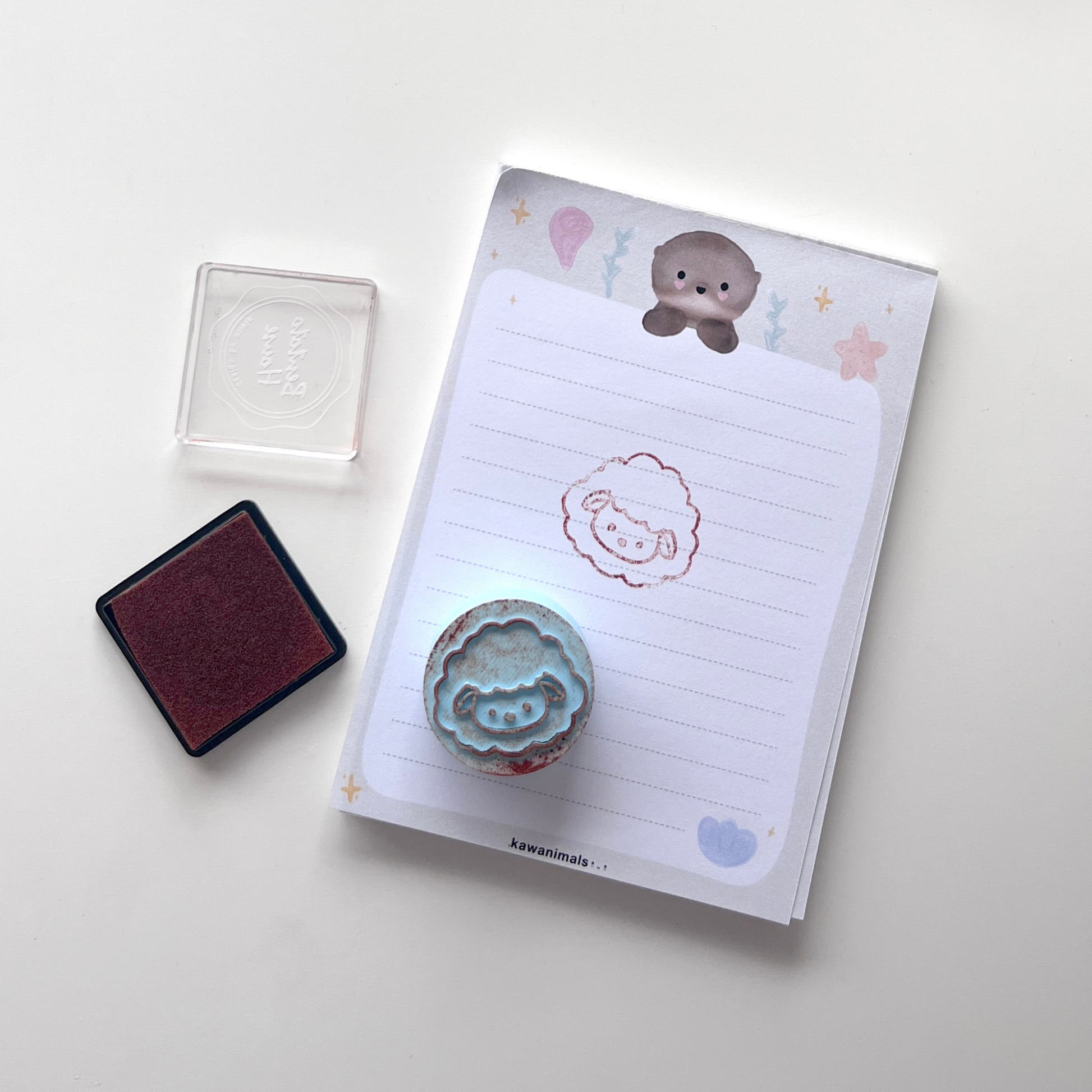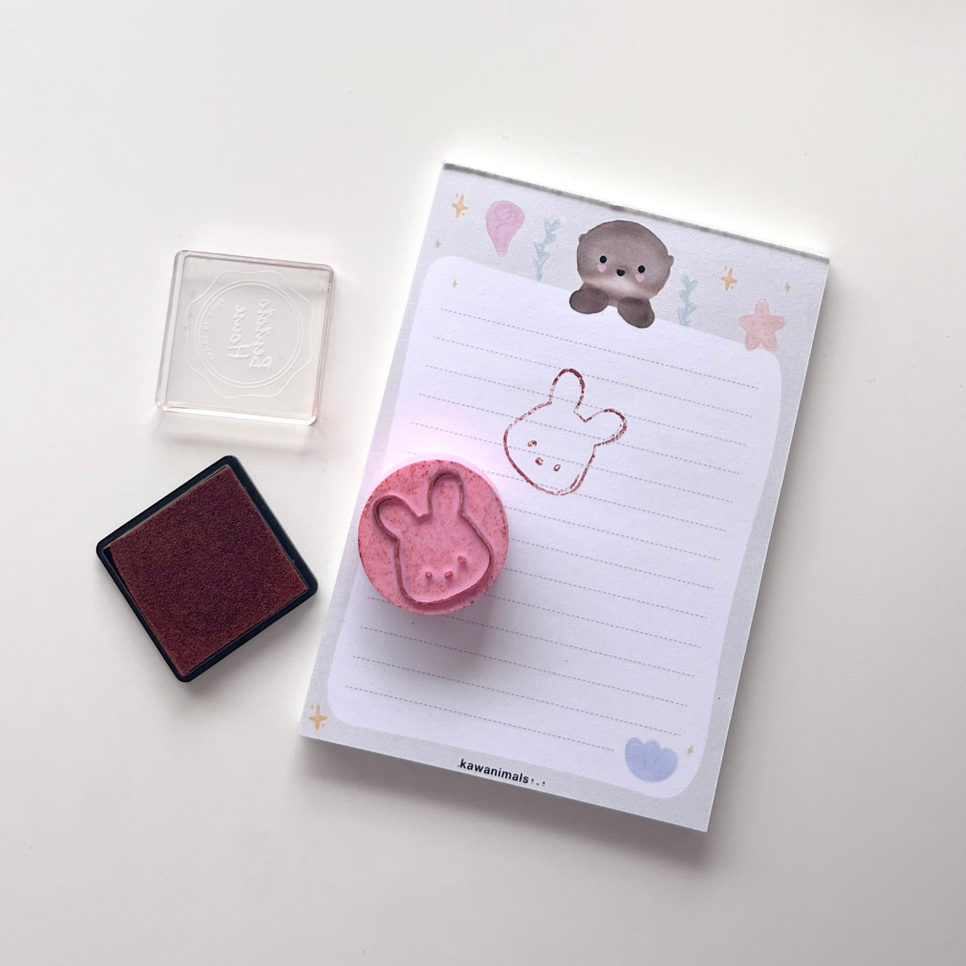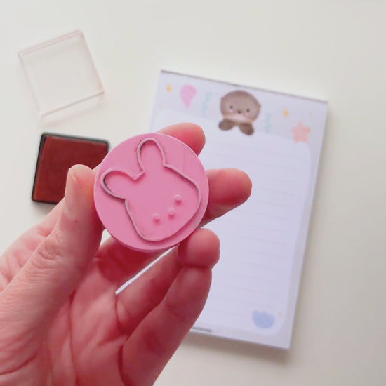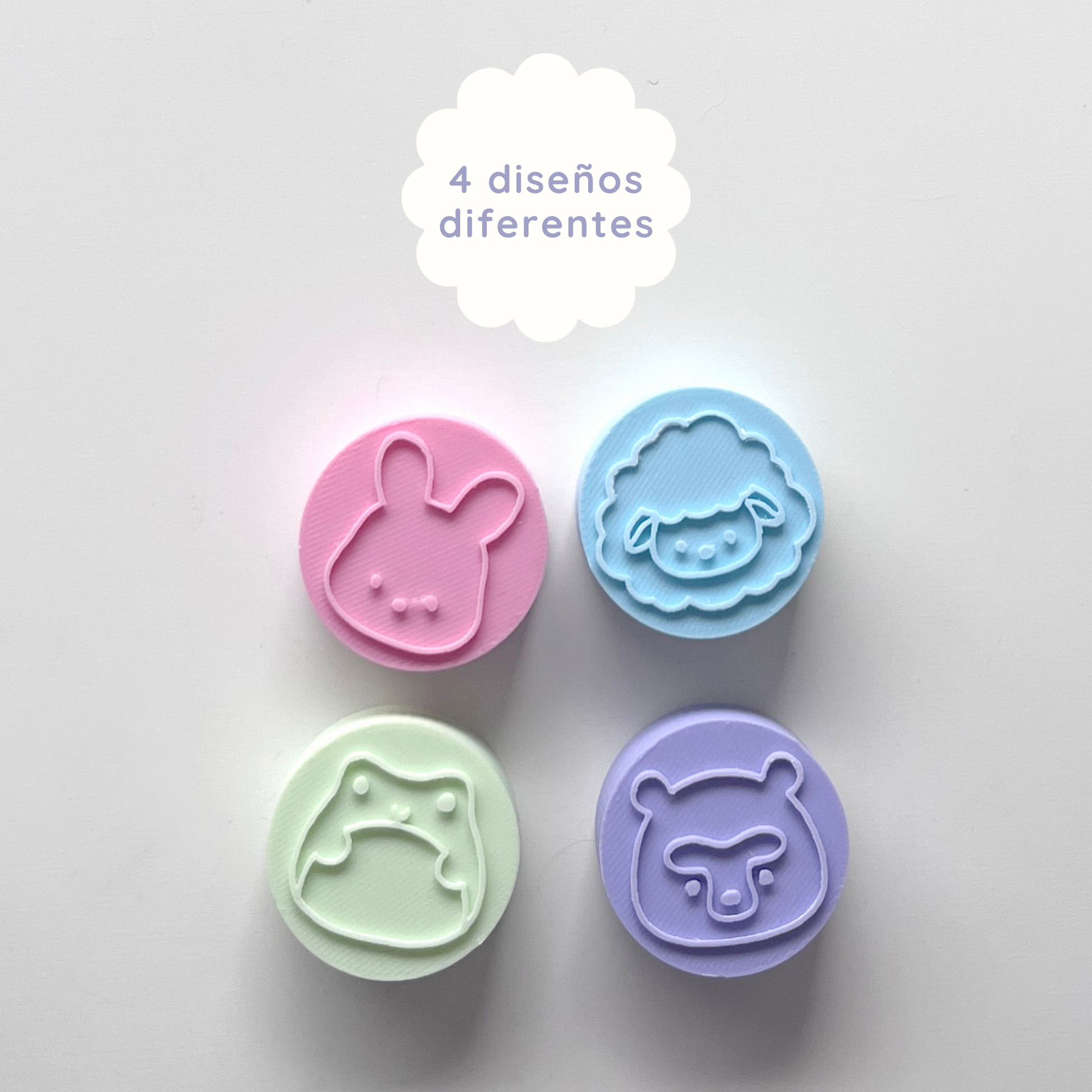 Este kit de sellos impresos en 3D incluye 4 diseños de kawanimals: oso de anteojos, coneja, nubeja y ranita.