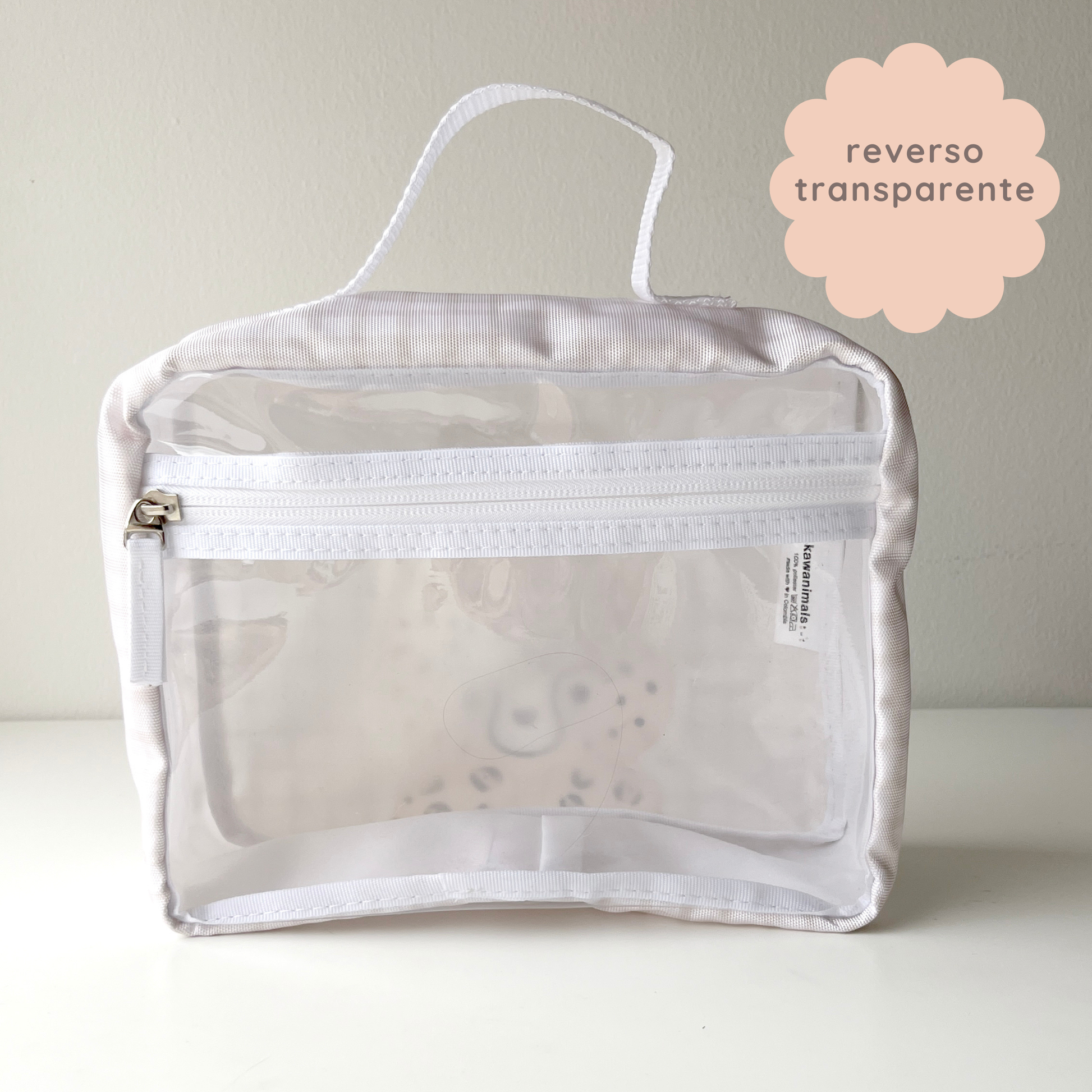 Para llevar contigo todo lo que necesites. Nuestro neceser es liviano, resistente al agua y muy muy tierno! Con una práctica manija para llevarlo, y reverso transparente para que veas con facilidad el interior.